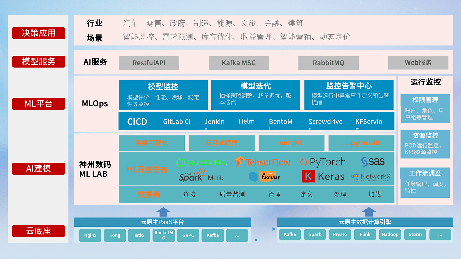 数据+模型双引擎驱动,,,面向智能服务场景,,,,快速灵活利用AI技术,,支持业务决策,,,,助力企业智能化转型破局。。